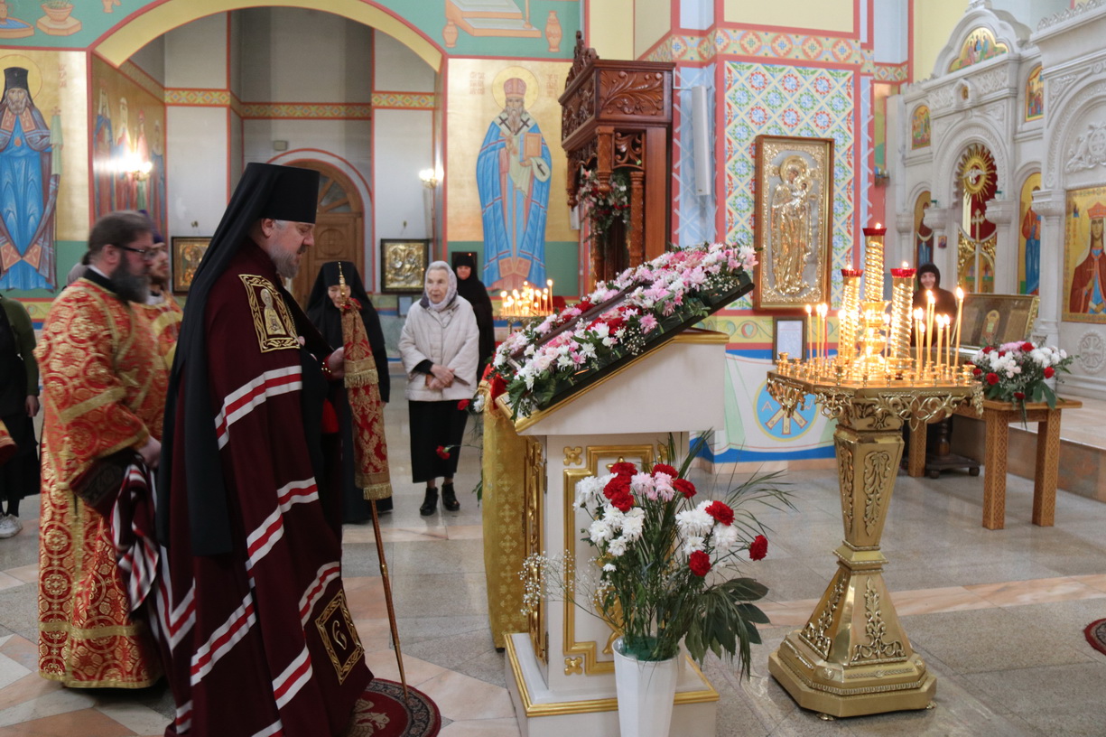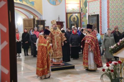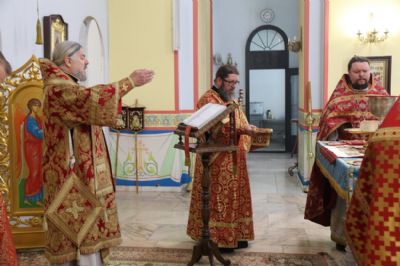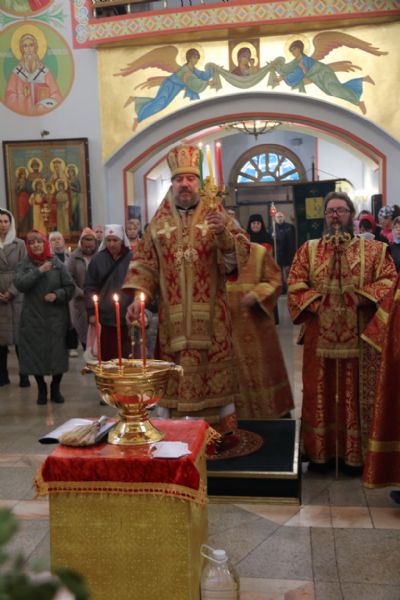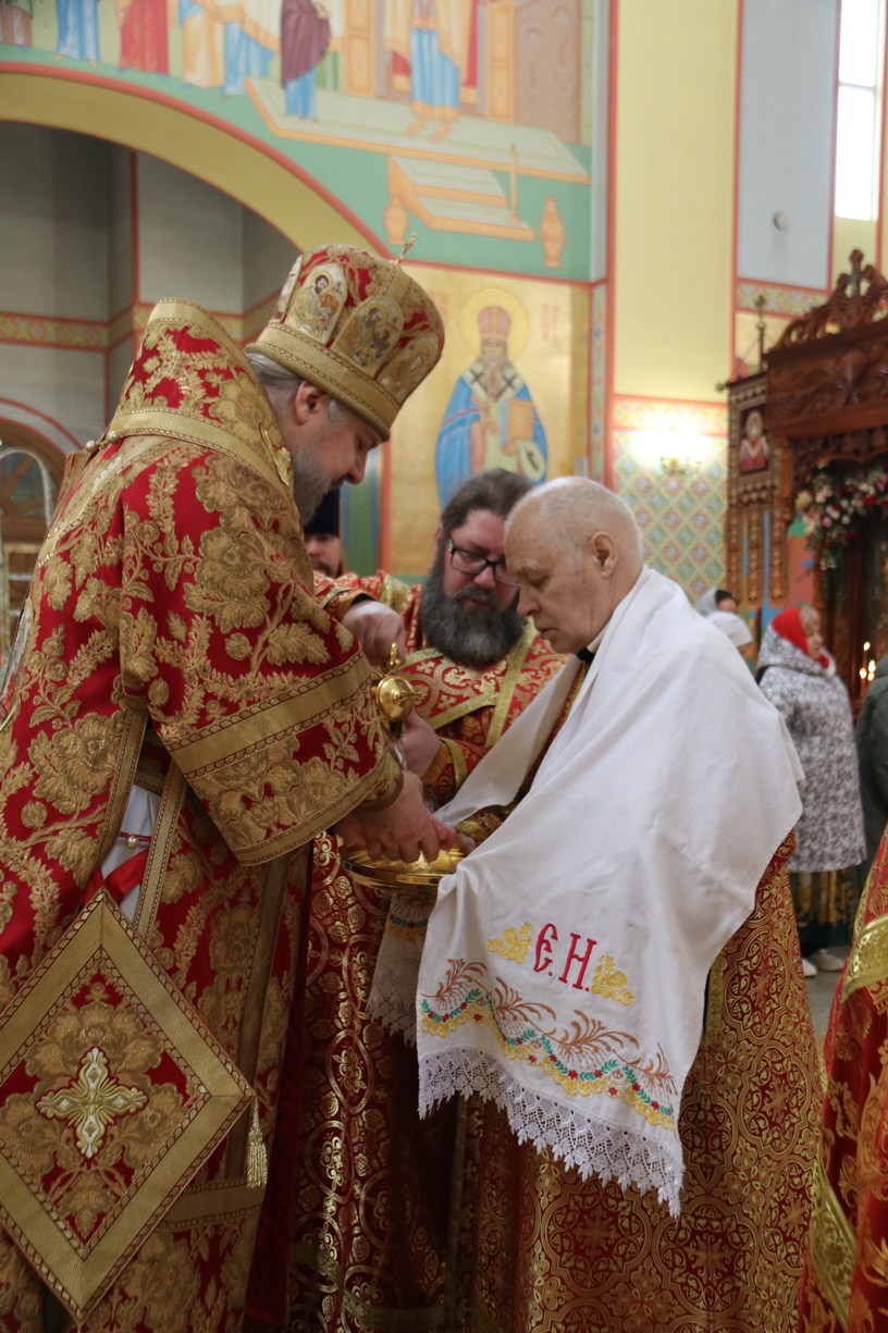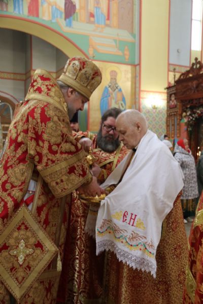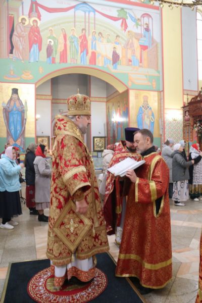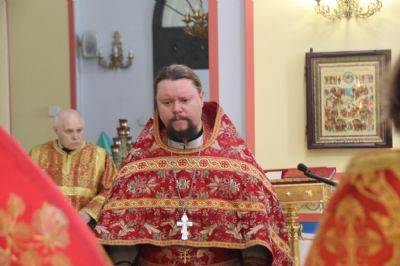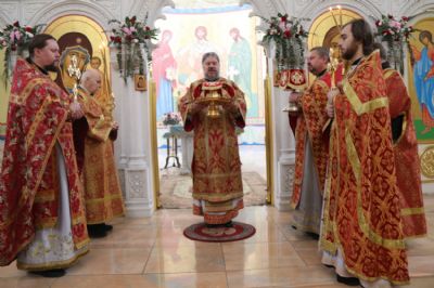 Его Преосвященству сослужили: иерей Виталий Шаркеев; иерей Андрей Попов; иеромонах Ермоген (Крещенко) и иерей Илия Гречишников.