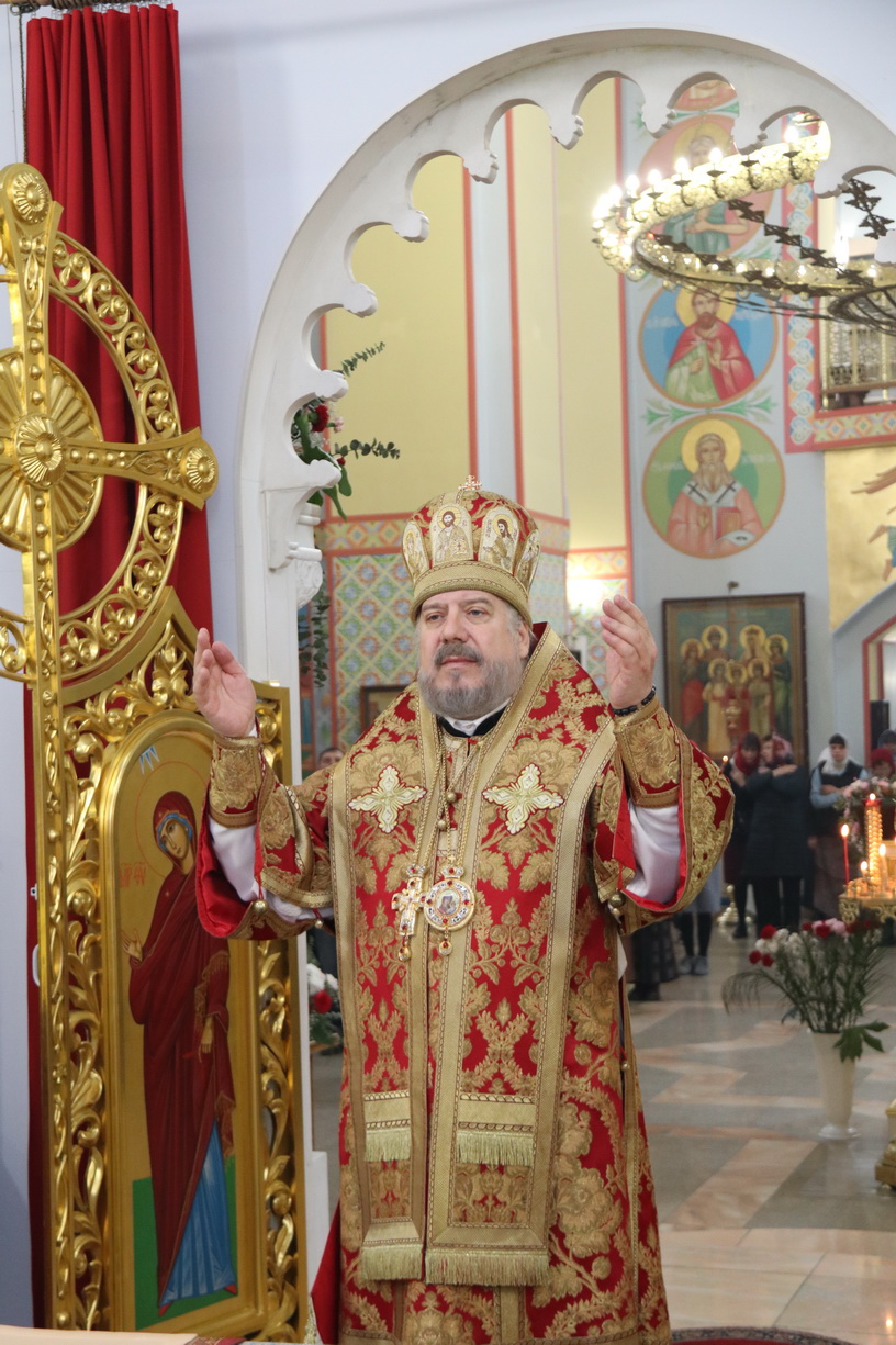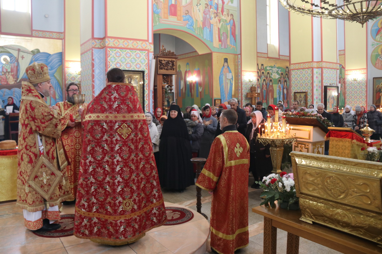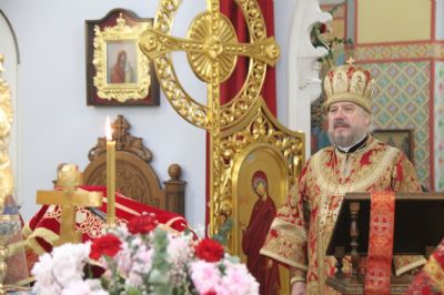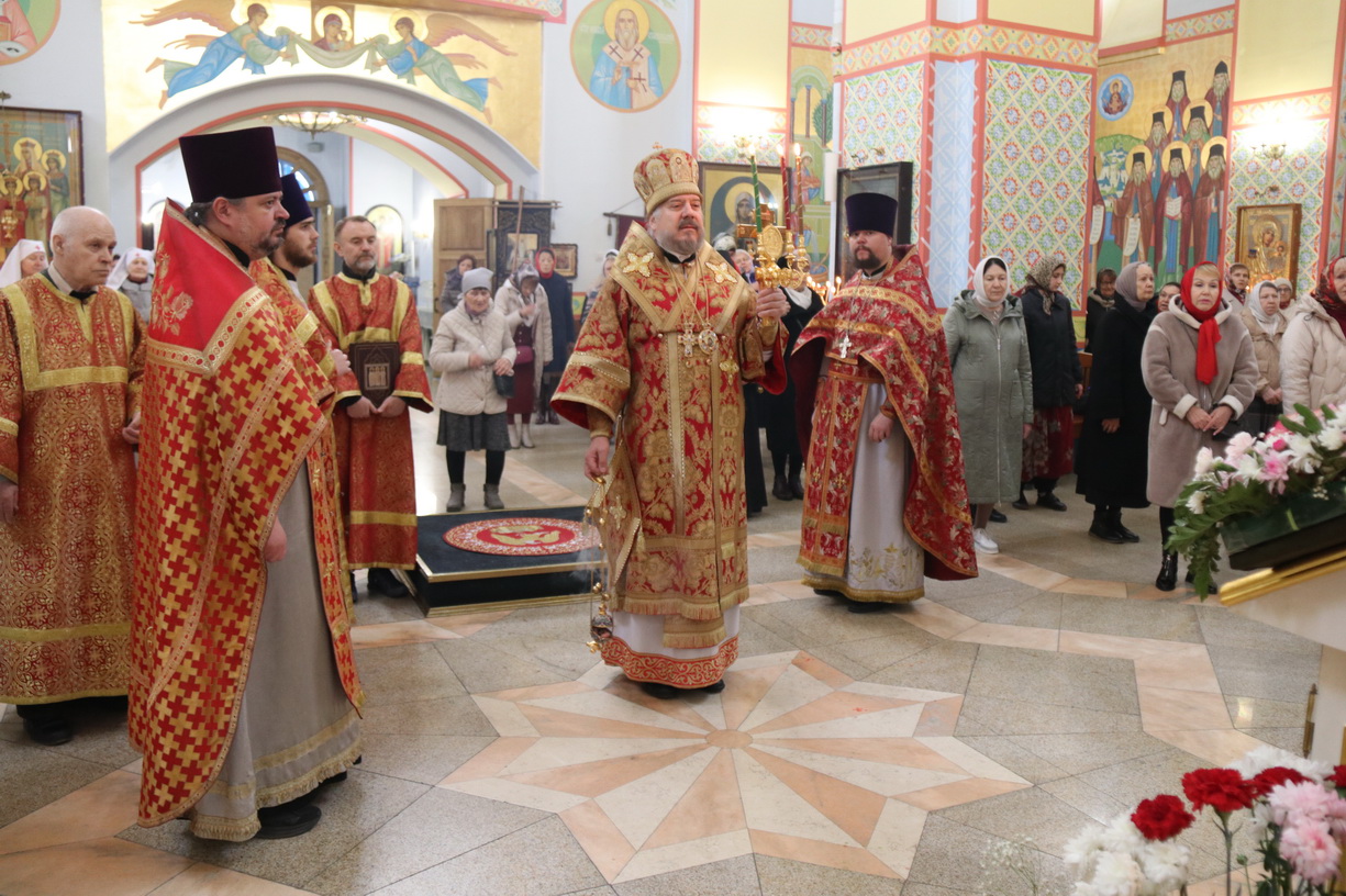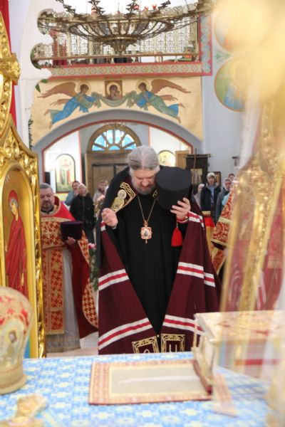 Его Преосвященству сослужили: иерей Виталий Шаркеев; иерей Андрей Попов; иеромонах Ермоген (Крещенко) и иерей Илия Гречишников.