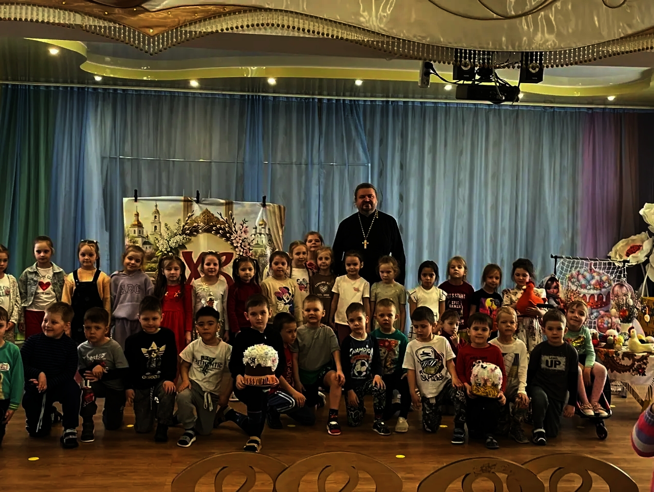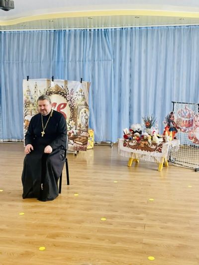 На Светлой седмице руководитель миссионерского отдела Находкинской епархии иерей Виталий Шаркеев посетил детский сад No 60 г. Находки и рассказал дошкольникам о Светлом Христовом Воскресении.