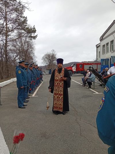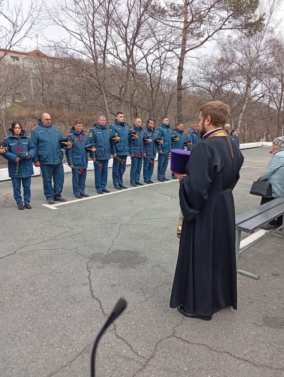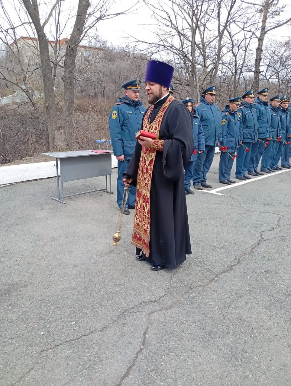 Иерей Иоанн Капитанюк совершил литию о погибших при исполнении служебных обязанностей сотрудниках МЧС.