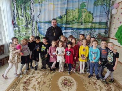На Светлой седмице иерей Виталий Шаркеев посетил детский сад № 42 г. Находки и побеседовал с воспитанниками детского учреждения о главном христианском празднике — Светлой Пасхе.