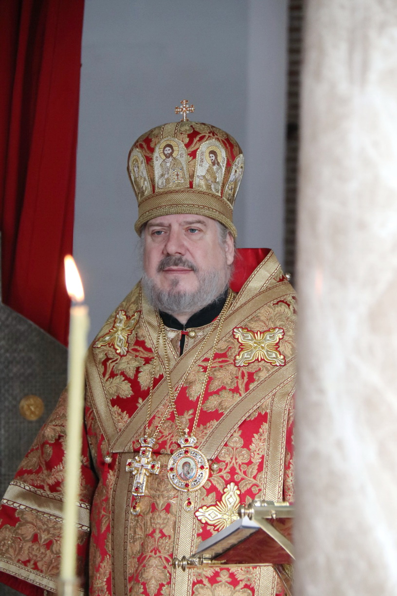 Его Преосвященству сослужили: иерей Иоанн Капитанюк, настоятель храма Рождества Христова; иерей Андрей Калнин, благочинный Казанского Кафедрального собора; иерей Андрей Попов и иеромонах Ермоген (Крещенко), клирики Казанского собора.