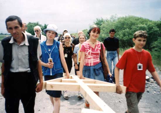 Это уже пятый крест, установленный нынешним летом членами духовного центра. Предыдущие воздвигнуты в июне по четырем сторонам города на развилках основных дорог во время крестного хода. Тогда участие в нем приняло 170 человек в возрасте от 4 до 89 лет. Как сообщил настоятель храма отец Владимир, подобные мероприятия призваны обратить внимание молодежи на преодоление кризиса веры, возрождение духовности, на обращение к Богу.