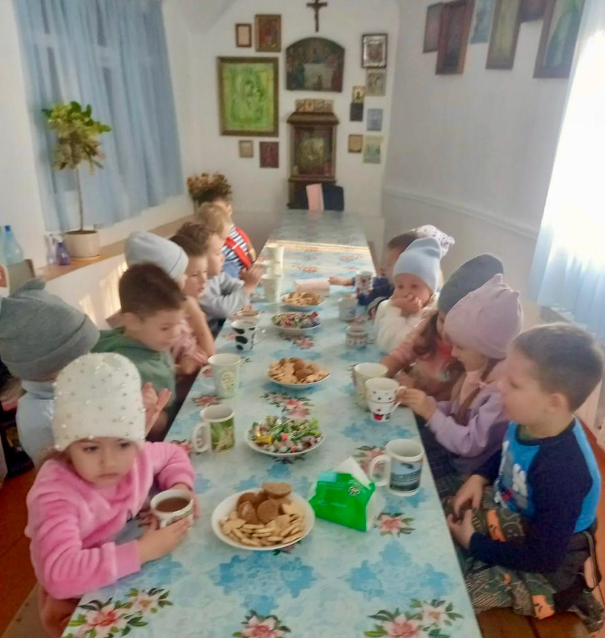 Воспитанники детского сада оказались не только внимательными слушателями, но и сами с удовольствием задавали вопросы. Детские вопросы были непосредственными и очень глубокими. А потом всех ждал чай со сладостями в трапезной храма.