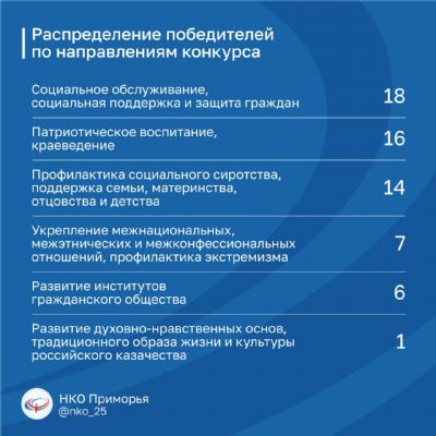 В этом году победителями стали 6??2?? некоммерческие организации Приморского края. Всего на конкурс поступило 109 заявок.