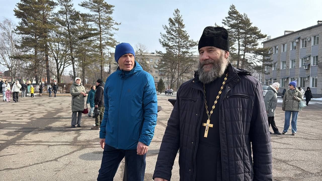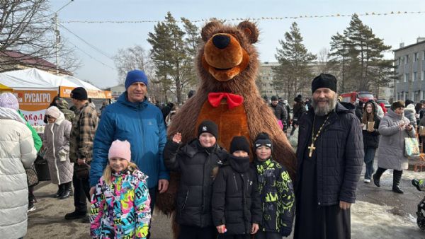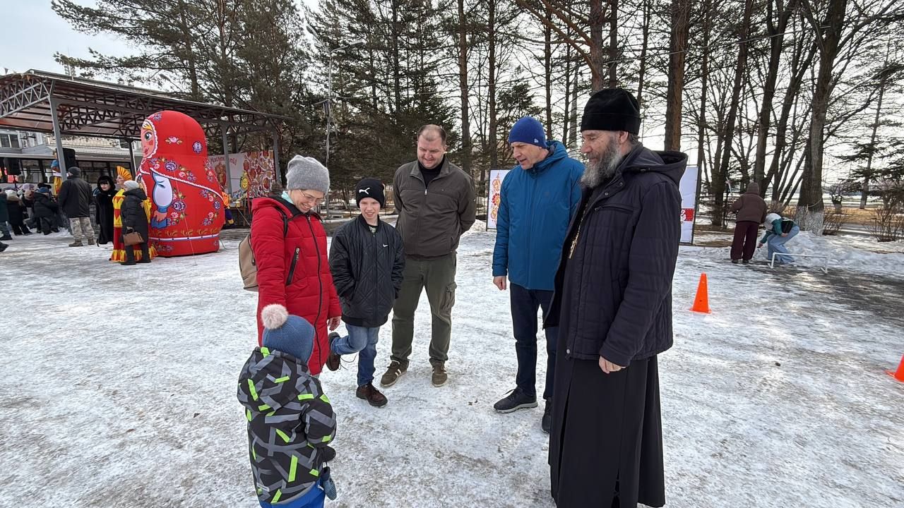 22 февраля, в Прощеное воскресенье, настоятель храма во имя Архистратига Михаила с. Михайловка иерей Владимир Яковченко и глава Михайловского муниципального округа Владимир Архипов посетили масленичные гулянья вместе с детьми воскресной школы на центральной площади села.