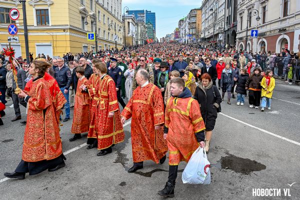 12 апреля, в день празднования Светлой Пасхи, жители Владивостока приняли участие в торжественном крестном ходе по Океанскому проспекту. Шествие началось от храма Покрова Пресвятой Богородицы и завершилось у Спасо-Преображенского кафедрального собора.