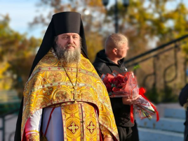 На входе в храм прихожане встречали главу митрополии хлебом-солью и букетами цветов.