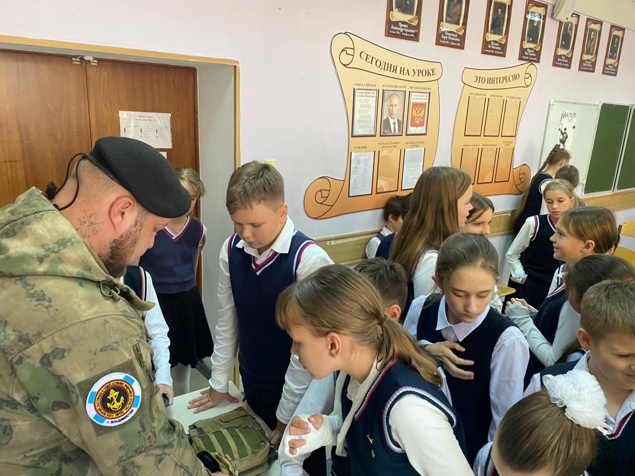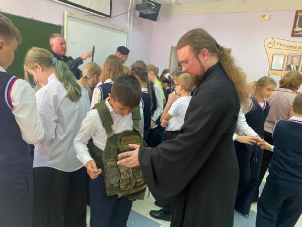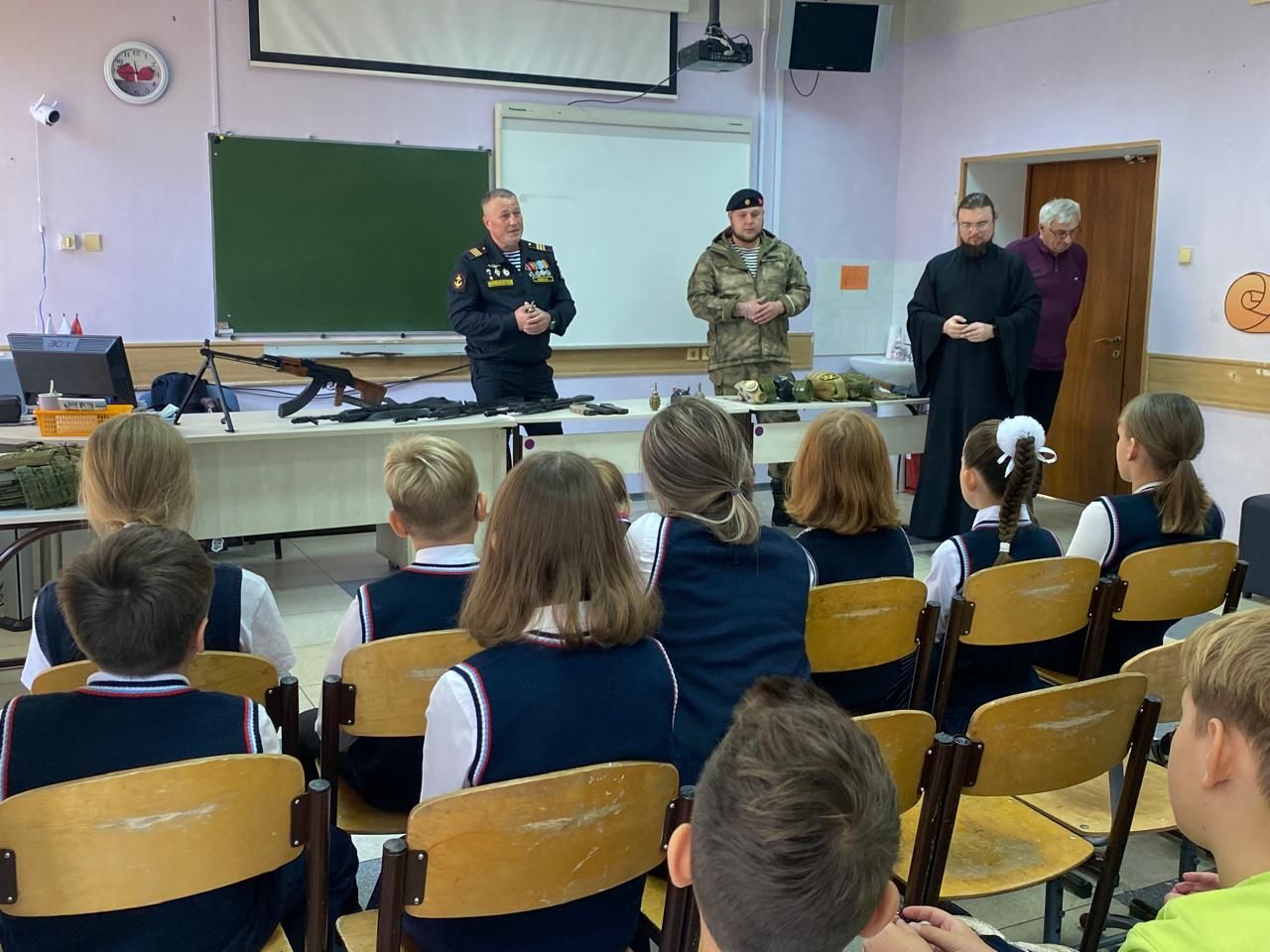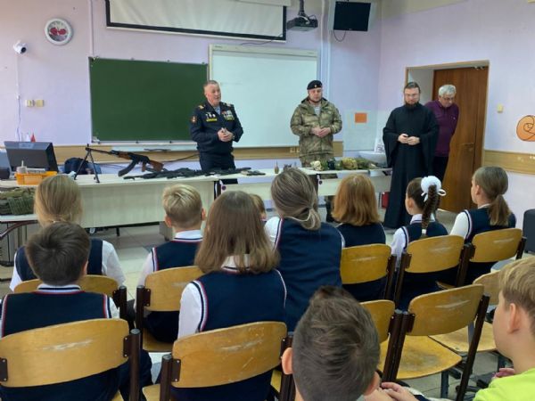 Руководство и педагоги средней школы №6 г. Владивостока пригласили ответственного за социальное, миссионерское и военное служение храма в честь Казанской иконы Божией Матери г. Владивостока инока Дионисия совместно с военнослужащими ВС РФ, ветеранами СВО, участниками "Союза морской пехоты и ветеранов боевых действий" на урок к пятиклассникам. Встречу приурочили к прошедшему недавно Дню отца. На уроках присутствовало около 60 ребят.