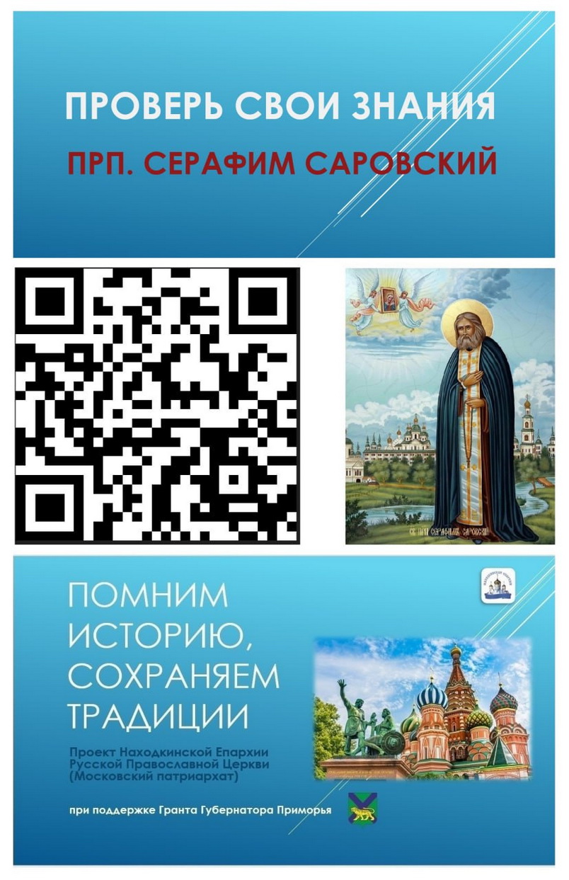 Онлайн-опросы разработаны Находкинской епархией в рамках проекта «Помним историю, сохраняем традиции» при поддержке Гранта Губернатора Приморья. Проект направлен на укрепление духовно-нравственных ценностей, повышение уровня исторической грамотности школьников, студентов, курсантов. Территория проекта — Находкинский городской округ, г. Фокино, г. Большой Камень, Партизанский городской округ.