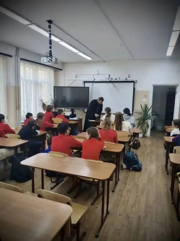 Отец Владимир провел с учащимися беседу, посвящённую значению Библии как нравственного ориентира для человека на протяжении веков. Батюшка поведал детям историю русского книгопечатания: школьники узнали о деятельности первопечатника Иоанна Федорова и первой датированной русской печатной книге — «Апостоле».