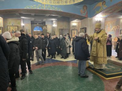На утрене всенощного бдения, после чтения уставного Евангельского зачала, Владыка помазал духовенство и прихожан освященным елеем.