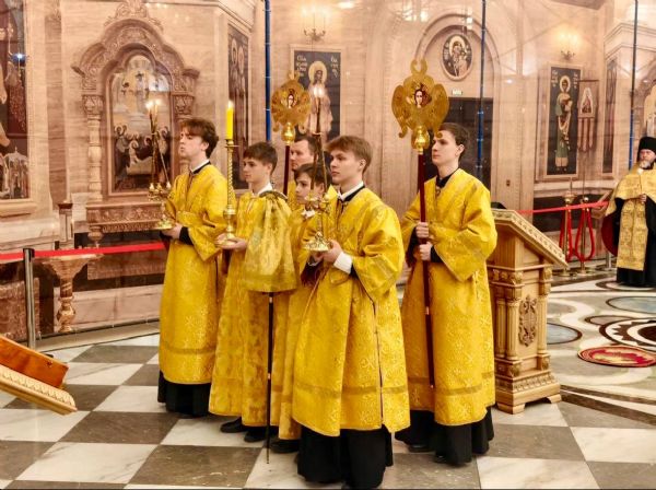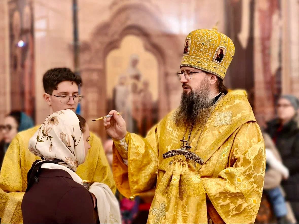 Во время вечерни архипастырь освятил пять хлебов, вино и елей, а также совершил Елеопомазание, символизирующее Божию милость ко всем, приносящим покаяние.