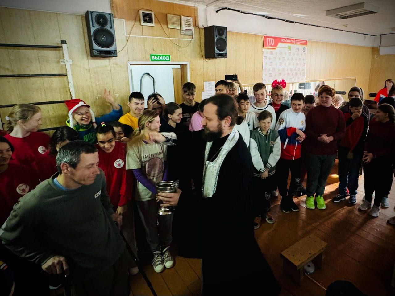 Отец Владимир поддержал детей в их стремлении к физическим достижениям и пообщался с ними, рассказав о великих христианских праздниках — Рождестве Христовом и Крещении Господнем.