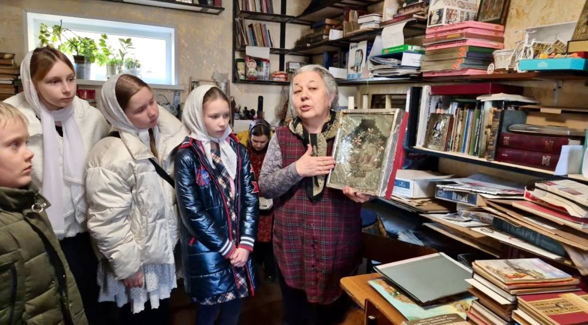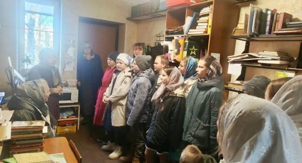 Одним из самых ярких моментов праздника стало посещение храмовой библиотеки. Библиотекарь прихода, Елена Филатова, подготовила для ребят интересную выставку старинных книг. Она познакомила их с редкими изданиями, рассказала об их истории и значении. Также особое внимание детей и учителей привлёк рассказ о святынях храма — старинной иконе советских времён, так называемой «фалейке», которая хранится в библиотеке, и монашеской скуфейке, которая была обнаружена в стенке деревянного киота храмовой Владимирской иконы Божией Матери. Завершая знакомство с библиотекой, Елена Ивановна устроила для детей небольшой духовно-литературный марафон. Дети вслух прочитали несколько поучительных историй из патерика и поделились своими мыслями.