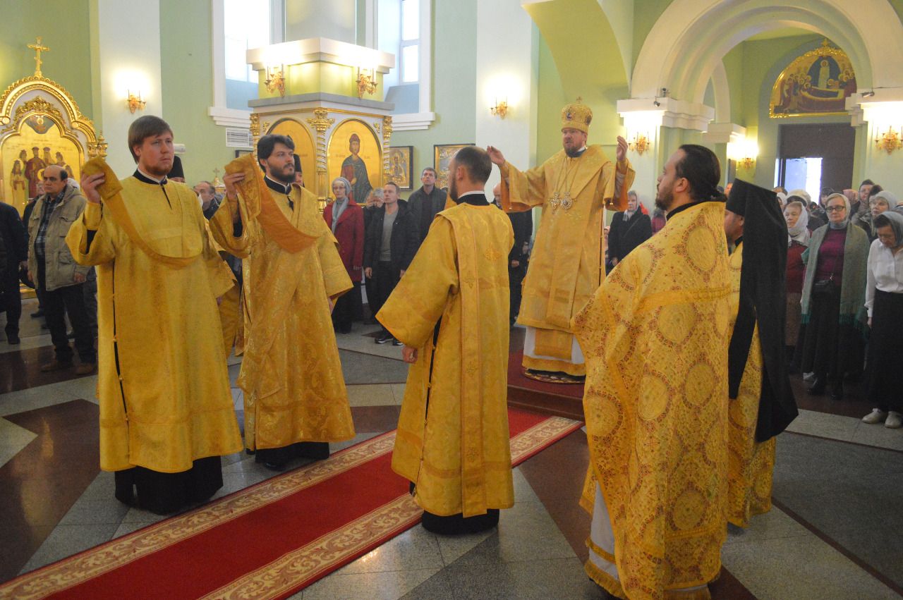 Его Высокопреосвященству сослужили: ключарь собора иеромонах Иоанн (Костин), игумен Тихон (Иршенко), игумен Антоний (Каменчук), протоиерей Игорь Шевчук, иерей Владимир Плотников.