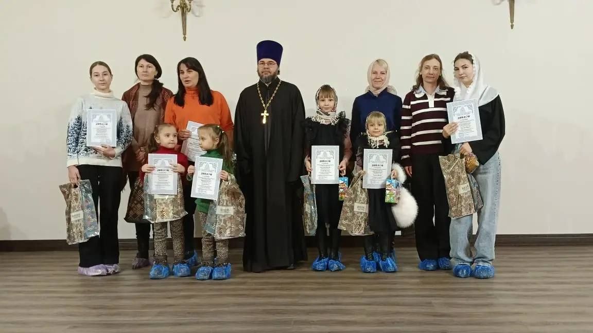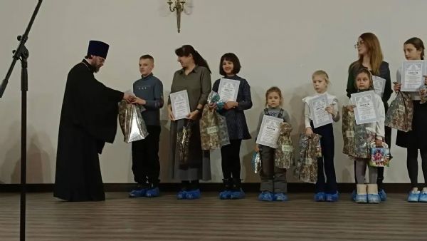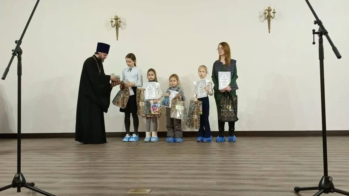 Затем состоялось само награждение. Наградил победителей протоиерей Даниил Нефедьев, основатель конкурса «Свет Рождества». Ребятам вручили дипломы I, II, III степени.