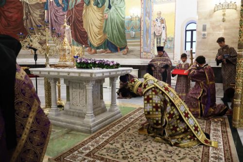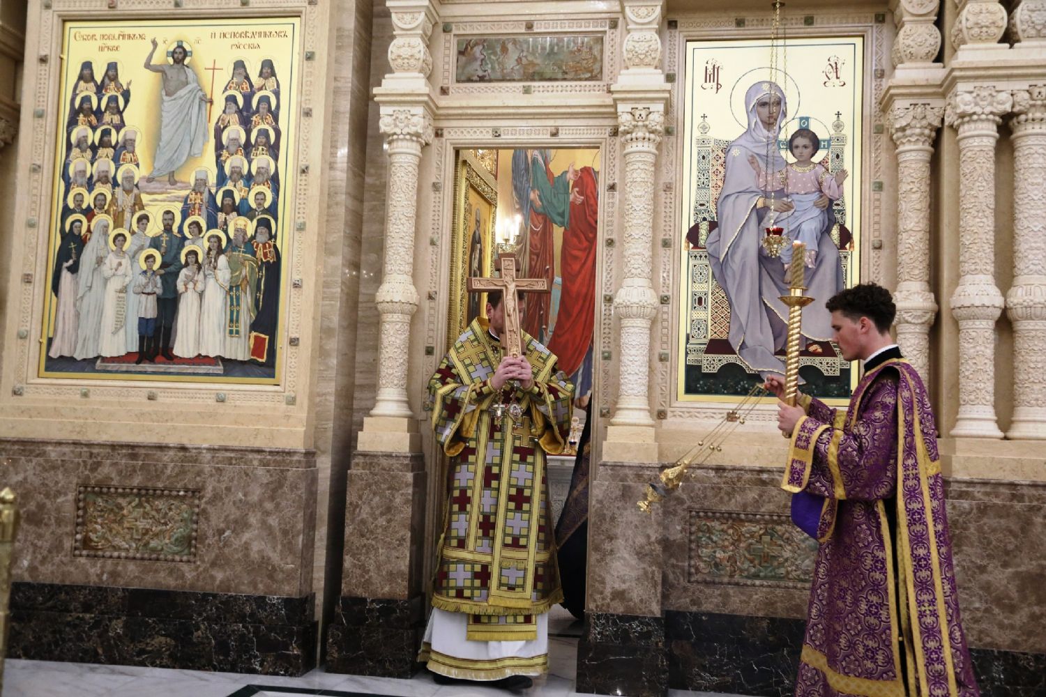 Митрополит Владивостокский и Приморский Владимир совершил всенощное бдение с чином Воздвижения Креста Господня в Спасо-Преображенском соборе