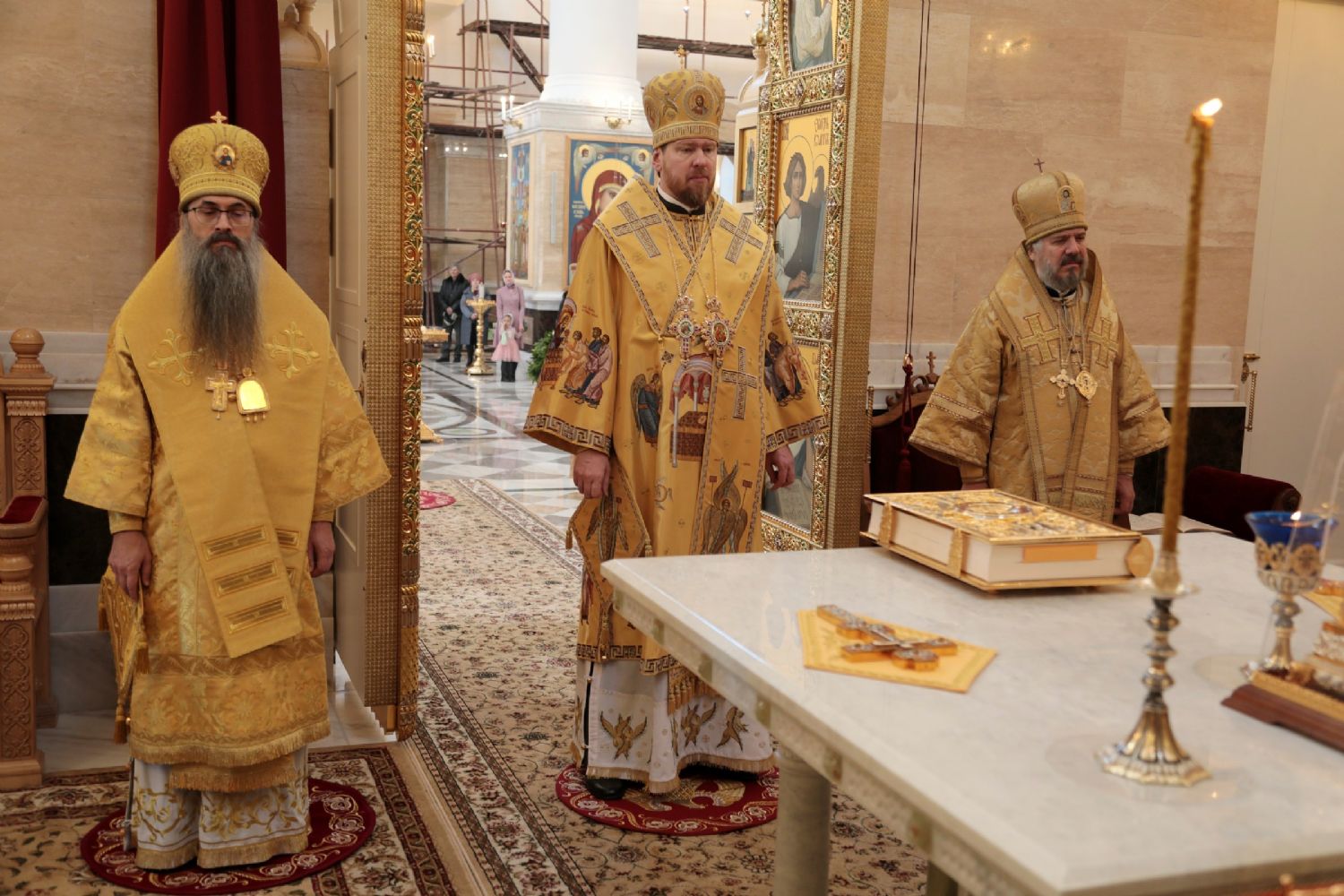 По сугубой ектении архипастыри вознесли молитвы ко Господу о Святой Руси и завершении строительства Спасо-Преображенского кафедрального собора г. Владивостока.