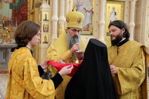 В завершение богослужения митрополит Владимир поздравил прихожан с днем памяти святителя Филарета и сугубо поздравил причастников с принятием Святых Христовых Таин.