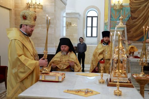 Его Высокопреосвященству сослужили: ключарь собора, благочинный I Владивостокского благочиния Владивостокской епархии, исполняющий обязанности благочинного II Владивостокского благочиния протоиерей Сергий Шуталев; игумен Антоний (Каменчук); иерей Максим Точуков; ответственный за организацию архиерейских богослужений иерей Дионисий Ищенко.