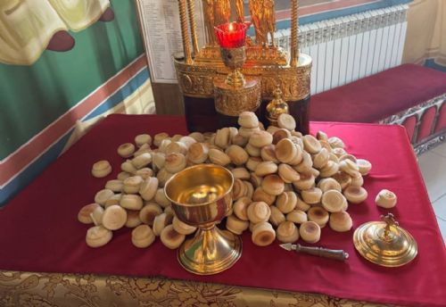На вечерне владыка Павел совершил литию с освящением пяти хлебов.