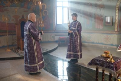 Его Преосвященству сослужил иеромонах Ермоген (Крещенко).