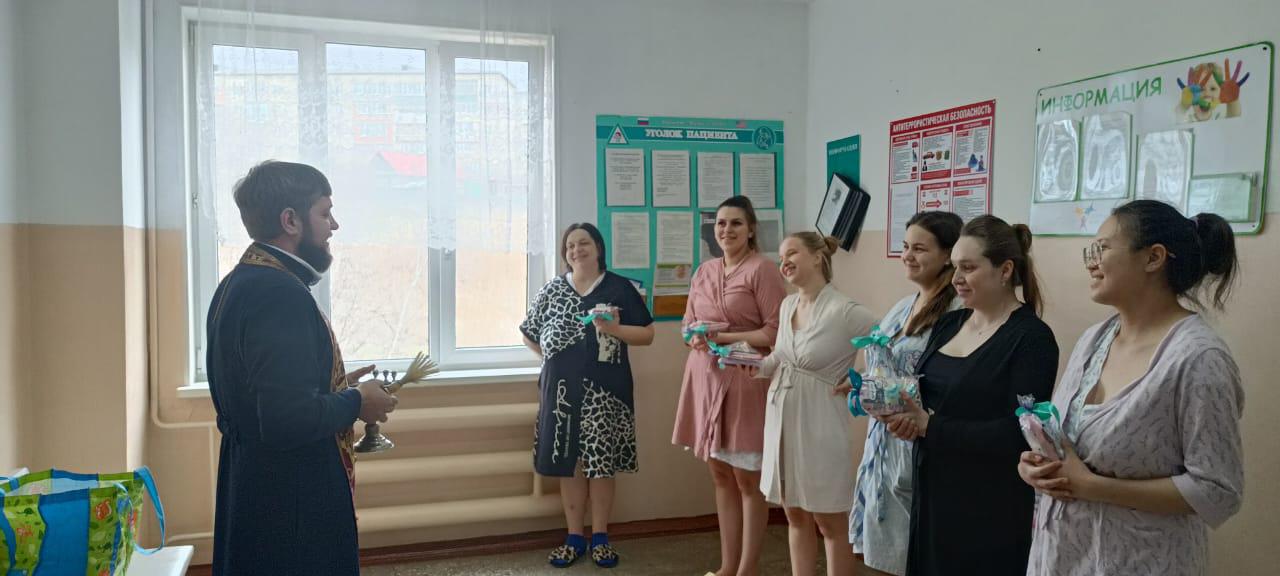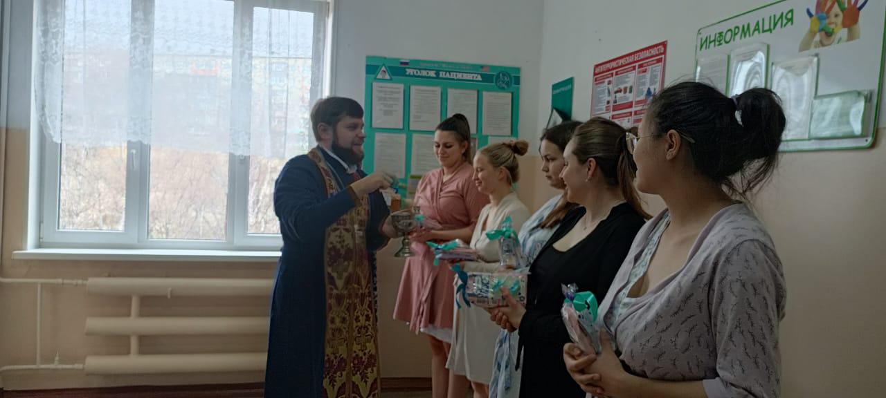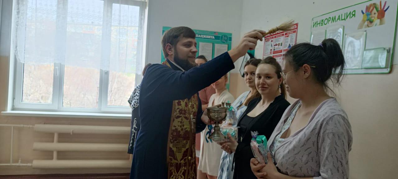 Настоятель храма Рождества Христова г. Находки иерей Иоанн Капитанюк посетил городской родильный дом и поздравил рожениц со Светлым Воскресением Христовым.