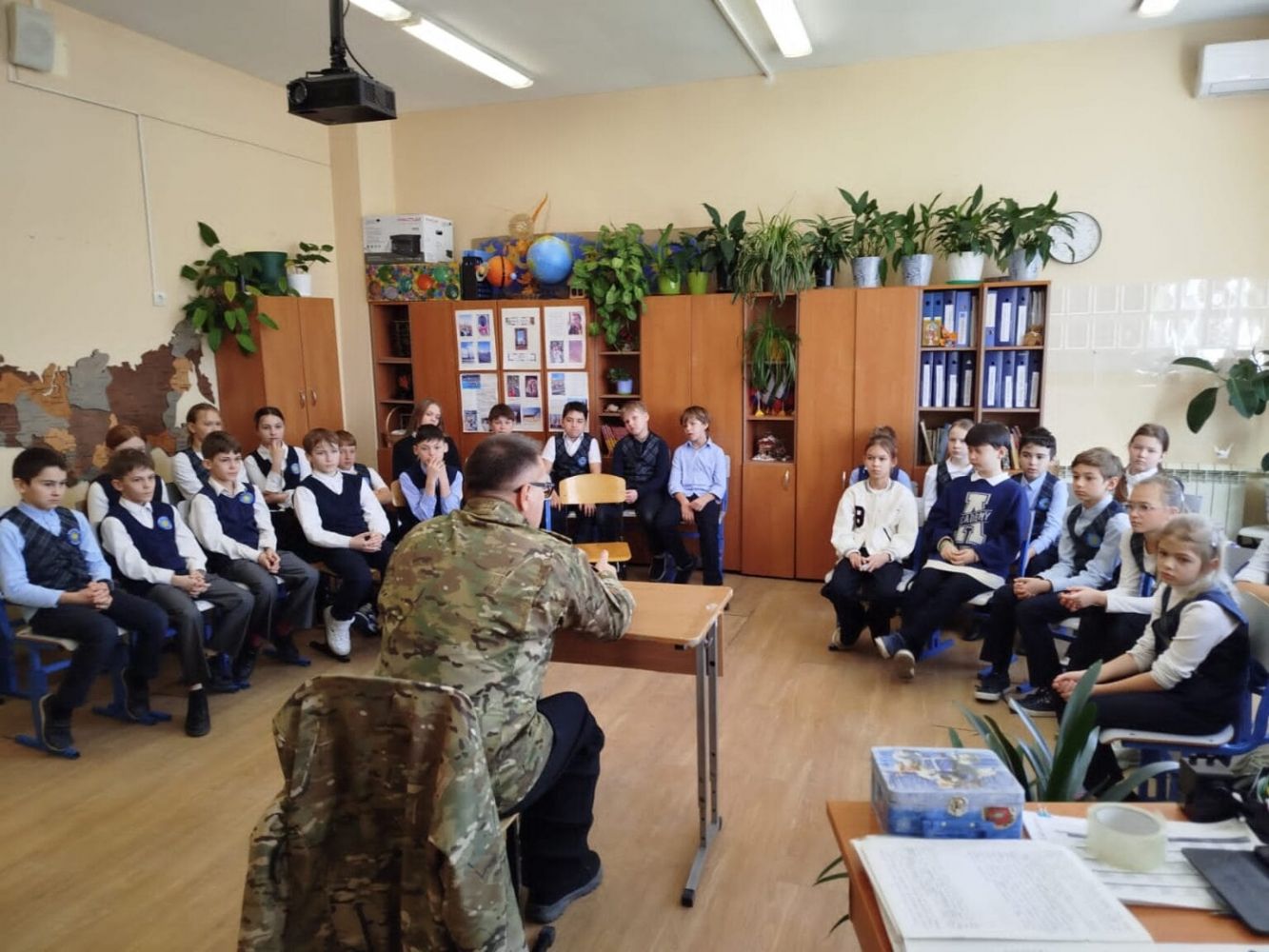 В школе №5 ветеран пообщался с учениками 4-А класса. Разговор затронул важные темы: что такое любовь к Отечеству, в чём заключается долг перед Родиной, почему важно помнить историю и героев. Дети встретили гостя с теплотой, подготовили концерт, прочитали стихи, исполнили песни и вручили ему подарки.