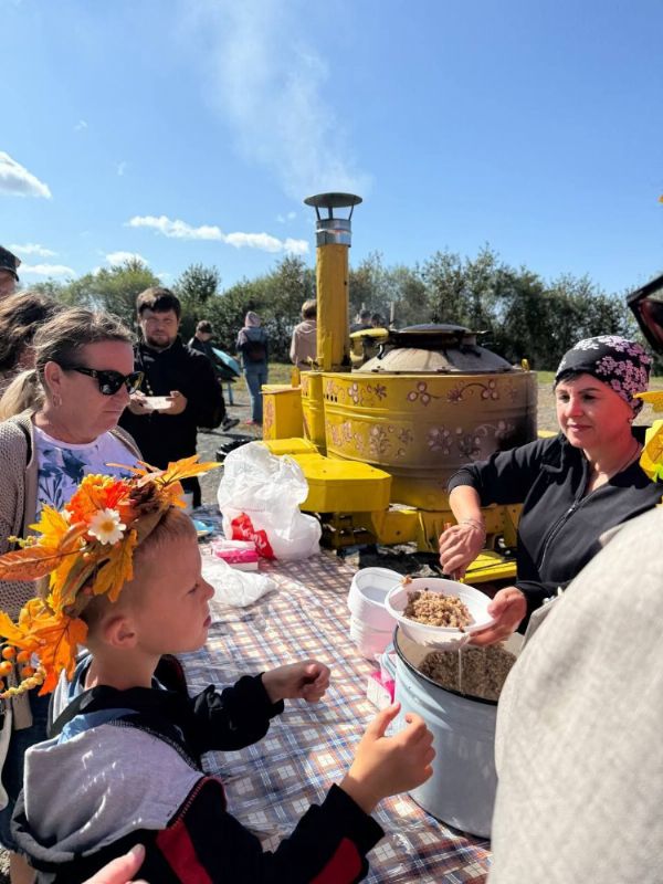 Гостей угощали вкусной кашей, приготовленной на полевой кухне, ароматным чаем из самовара, румяными блинами и разнообразными сладостями. И дети, и взрослые водили хоровод и участвовали в весëлых играх: соревновались в боях подушками на бревне, ходили на ходулях и перетягивали канат. Также был организован мастер-класс по плетению маскировочных сетей для передачи бойцам в зону СВО.