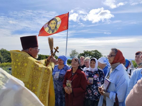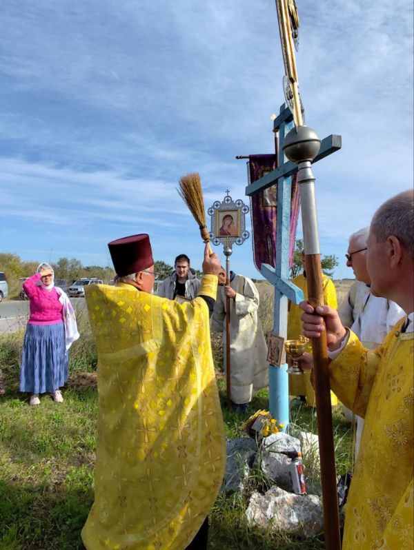 На месте встречи двух приходов был отслужен молебен. Все крестоходцы обратились к Господу с личными просьбами и общей благодарностью за преодоленный путь.