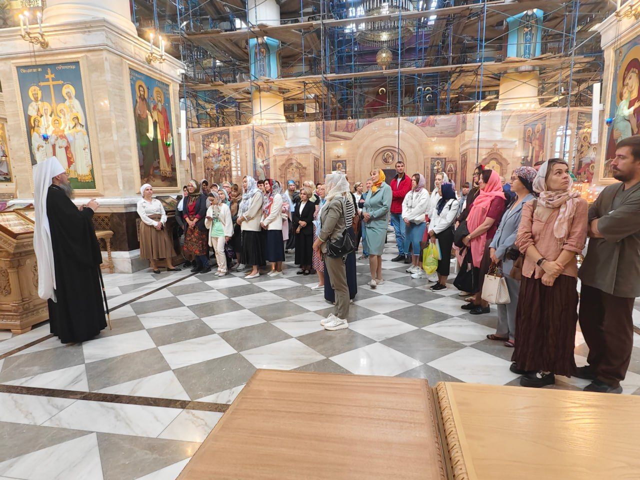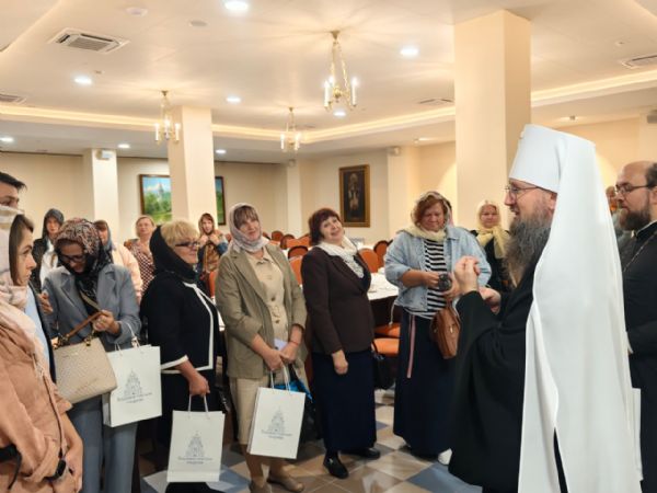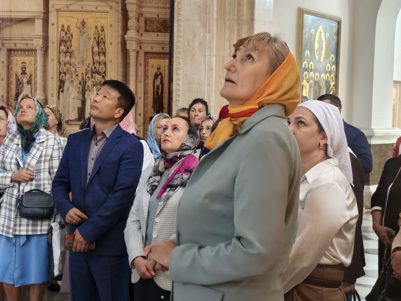 По традиции владыка Павел провёл для гостей экскурсию. Уже на входе педагогам разъяснили все слова, стоящие в именовании Спасо-Преображенского кафедрального собора. Экскурсанты узнали о празднике Преображения Господня, в честь которого он освящен, и о евангельском событии на горе Фавор, которое его прообразует. Затем было ещё несколько остановок: комментируя сюжеты различных фресок и икон, митрополит Павел вместе со слушателями совершил драматичное путешествие в историю Книги Бытия и Нового Завета, заодно проясняя духовные смыслы — и отдельной человеческой жизни, и современных событий в целом.