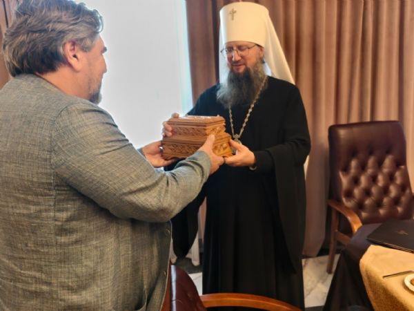 От имени всех членов Общественной наблюдательной комиссии Владимир Анатольевич преподнёс в подарок главе Приморской митрополии резную шкатулку, сделанную руками заключённых специально для владыки Павла.