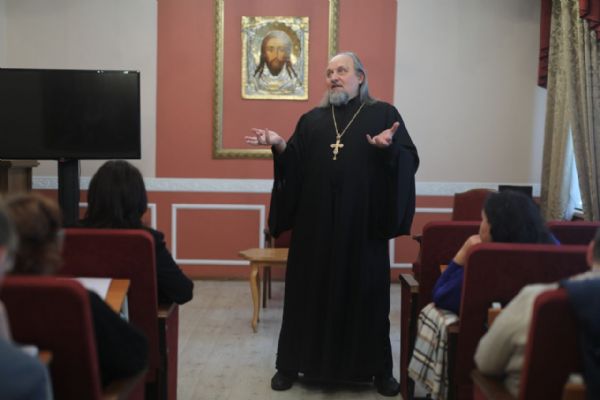 Затем протоиерей Ростислав Мороз провёл вводную лекцию для присутствующих. Вторая часть занятия включала в себя интерактивные уроки, в ходе которых педагоги создавали небольшие образовательные проекты.