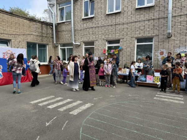 Воспитатели, родители и дети подготовили для участия в ярмарке домашнюю выпечку, сувениры и изделия ручной работы. Отец Даниил обратился к участникам и гостям мероприятия с пастырским словом, в которых подчеркнул важность участия каждого в поддержке защитников Отечества. После батюшка освятил ярмарочные изделия и окропил всех собравшихся святой водой.