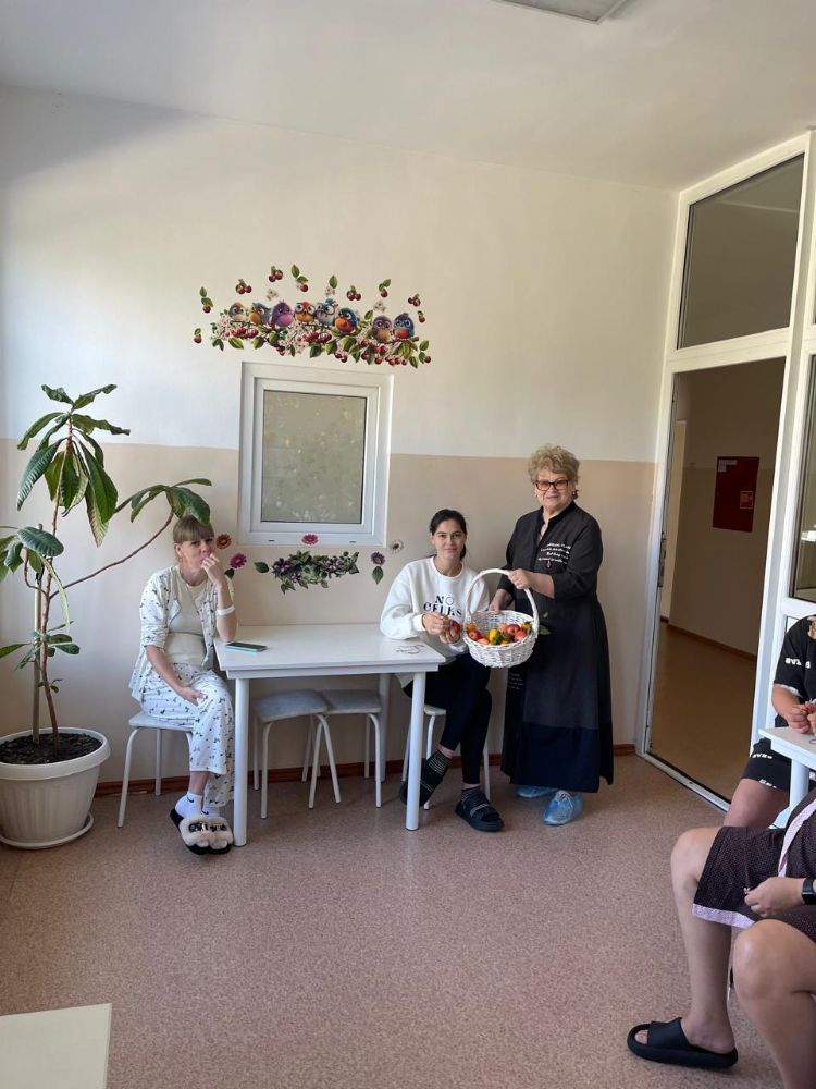 – Встреча была приурочена ко Всероссийскому дню беременной женщины, поэтому мы поехали с подарками: привезли корзину фруктов для мамочек и приданное для новорождённых, — рассказала Ирина Васильевна.