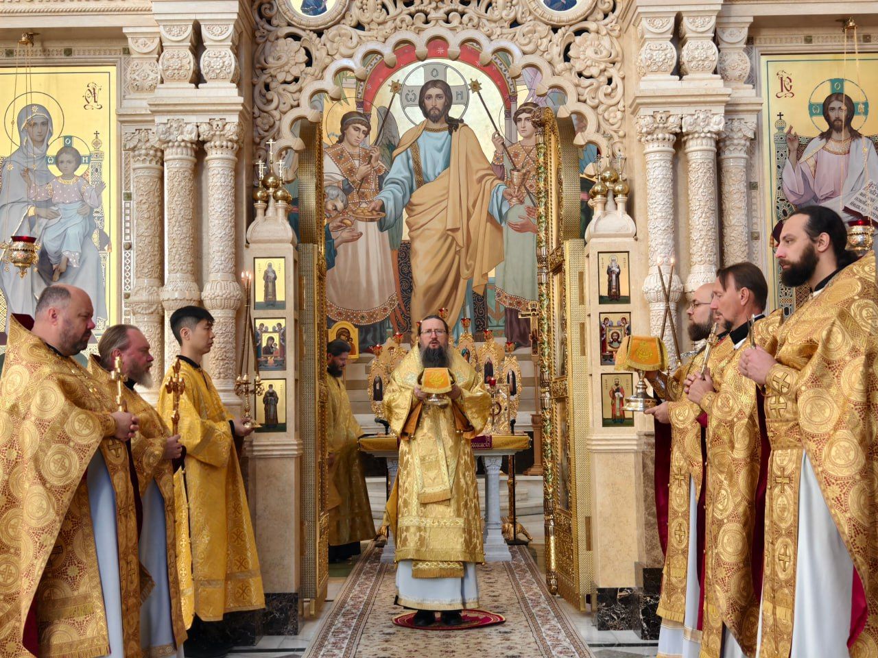 9 октября, в день памяти Апостола и Евангелиста Иоанна Богослова и святителя Тихона, Патриарха Московского и всея Руси, митрополит Владивостокский и Приморский Павел совершил Божественную литургию в Спасо-Преображенском кафедральном соборе. Его Высокопреосвященству сослужили: ключарь собора иерей Максим Точуков, игумен Антоний (Каменчук), иерей Дмитрий Винокуров, иерей Дмитрий Брызгалов, иерей Александр Соколов, диаконы Адриан Чунчук и Валентин Белкин.