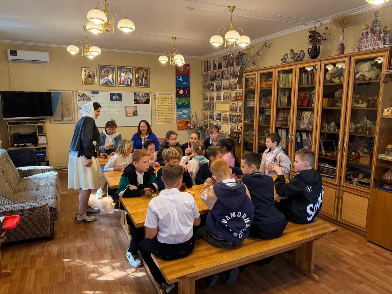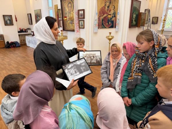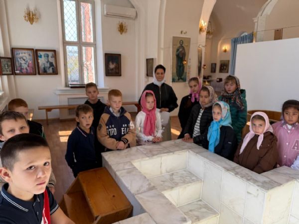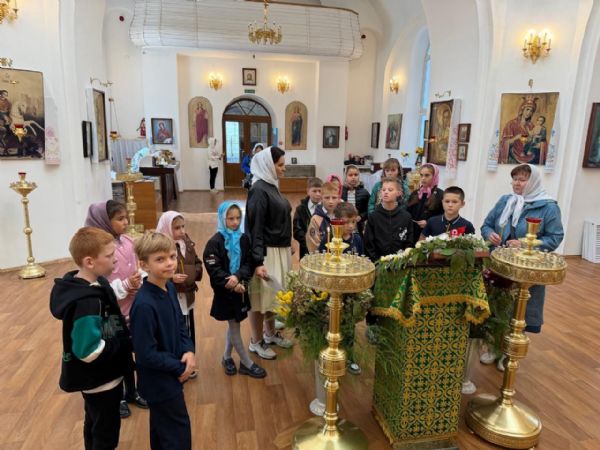 Особое внимание на экскурсии было уделено прп. Сергию Радонежскому, день памяти которого праздновался накануне. Виктория Владимировна разъяснила, что прп. Сергий Радонежский является покровителем учащихся и учителей, и что каждый может обратиться к нему за духовной поддержкой в процессе обучения. Ребята приложились к иконе прп. Сергия Радонежского, поставили свечи и получили благословение.