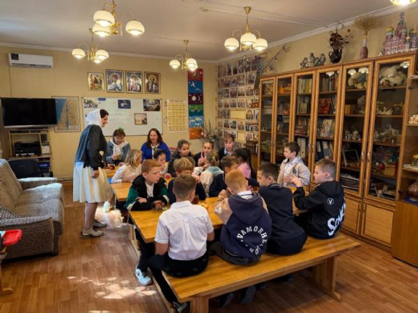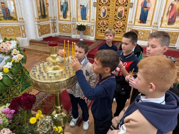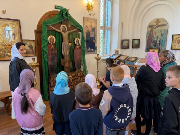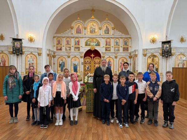 Настоятель храма, протоиерей Сергий Бирюк, и преподаватель Воскресной школы, Виктория Владимировна Костерина, провели экскурсию по храму, рассказали о его внутреннем убранстве и святынях, а также о роли веры и Церкви в жизни человека. Школьники с неподдельным интересом рассматривали иконы святых и слушали краткие рассказы о их житии.