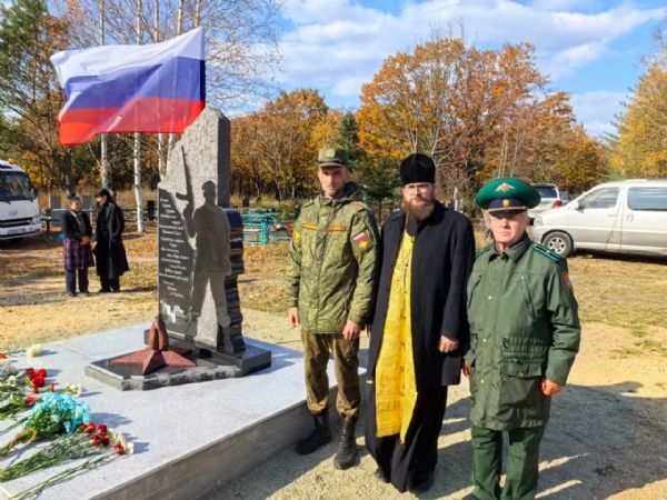 В церемонии открытия памятных стел принял участие протоиерей Дмитрий Федорин, настоятель храма Покрова Пресвятой Богородицы с. Покровка. Отец Дмитрий выступил со словом, в котором говорил о великой силе жертвенной любви и напомнил слова из Евангелия: «Нет больше той любви, как если кто положит душу свою за други своя» (Ин. 15:13). Затем батюшка совершил литию, испросив у Господа прощения грехов погибших воинов и их упокоении в Царствии Небесном.