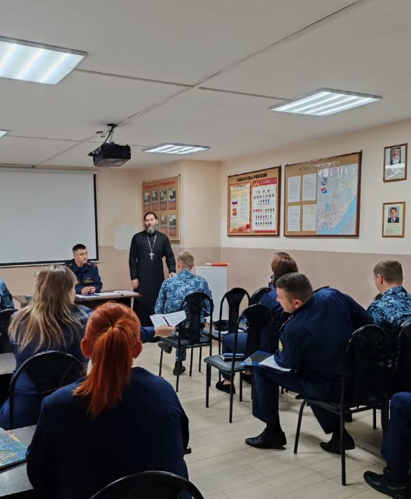 23 октября 2025 г. в Следственном изоляторе №2 г. Уссурийска состоялась беседа-лекция на тему: «Основы Православия и традиционные российские духовные ценности». Помощник начальника по работе с верующими СИЗО №2 иерей Владимир Яковченко, настоятель храма Архистратига Михаила с. Михайловка, выступил в аудитории, которая вместила 26 сотрудников учреждения.