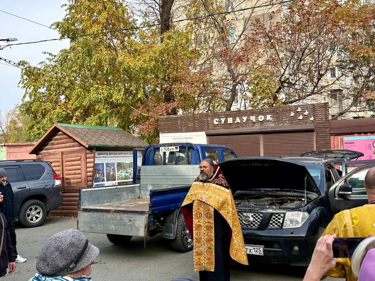После на территории храма освятили два автомобиля, которые будут отправлены воинам 155-ой бригады морской пехоты. От себя прихожане также передали бойцам молитвословы и иконки с пожеланиями Божией помощи.