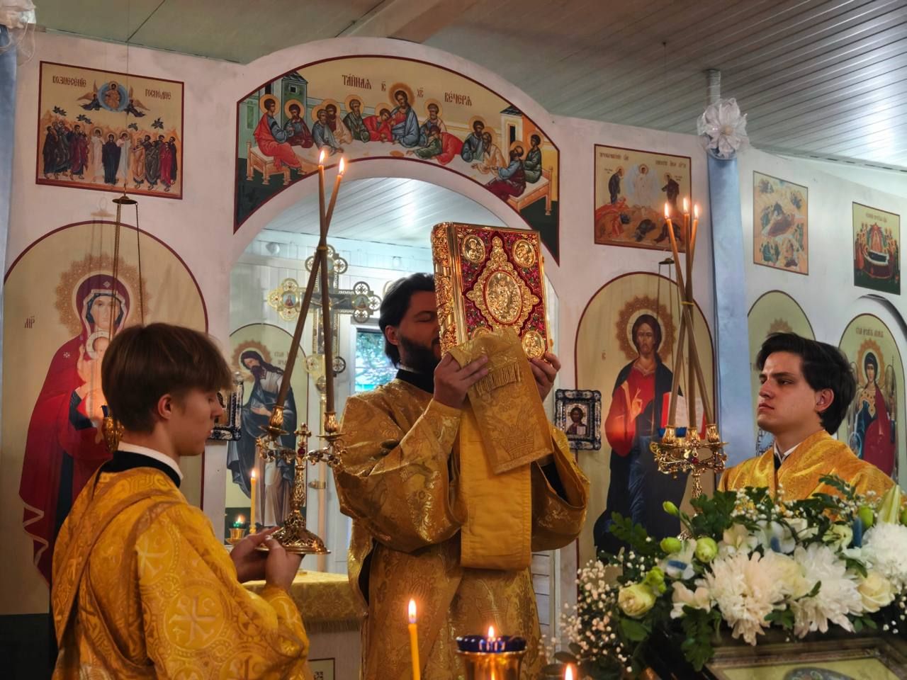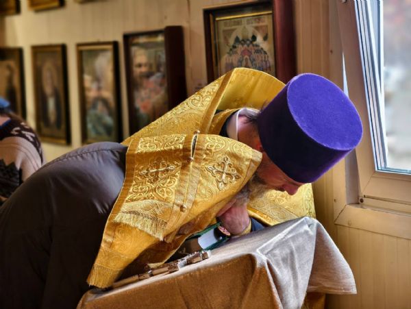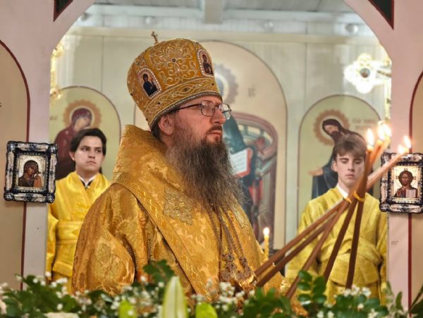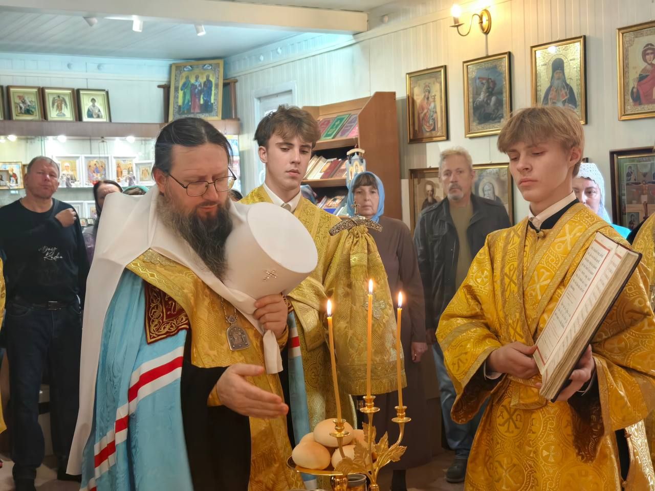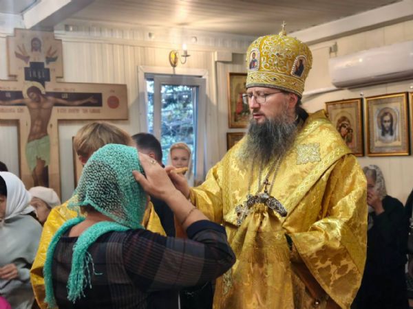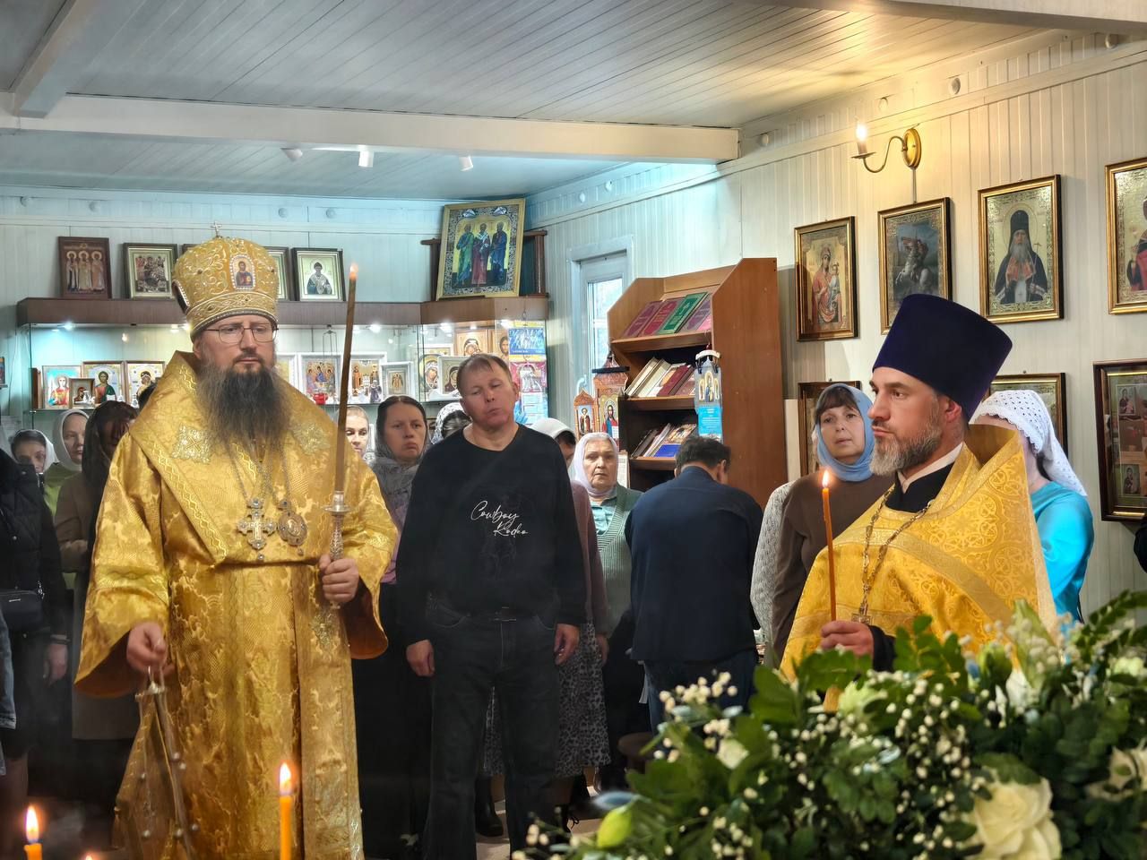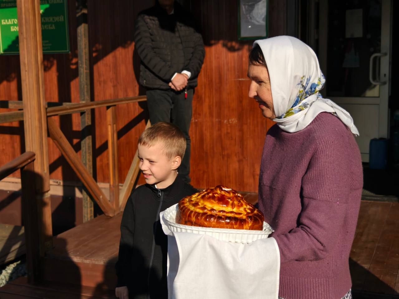 На входе в храм прихожане встретили Его Высокопреосвященство хлебом-солью. За богослужением владыка Павел освятил пять хлебов, вино и елей. После целования прихожанами праздничной иконы, архипастырь помазал молящихся освященным елеем в знак милости Господа ко всем людям.