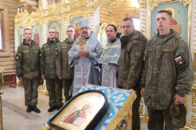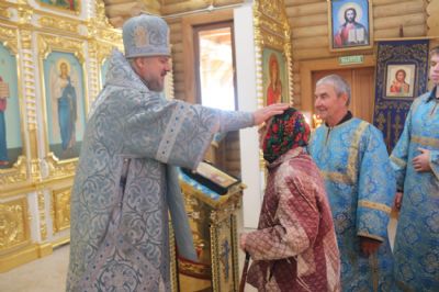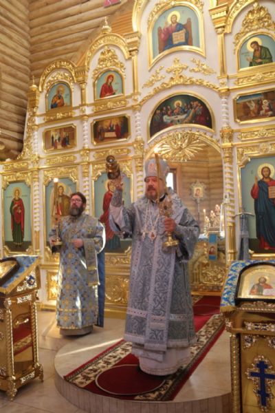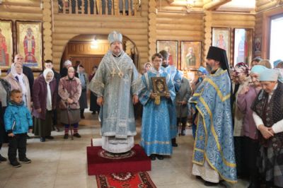 По заамвонной молитве епископ Николай, в сослужении священства, возглавил молебен и праздничный крестный ход, после владыка Николай обратился к присутствующим с архиерейским словом, в котором поздравил всех с престольным праздником Иверского храма, так же архипастырь пожелал всем молитвенного заступничества и помощи Царицы Небесной.