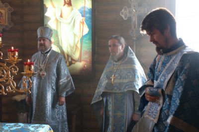 Его Преосвященству сослужили: иерей Алексий Пикулин, настоятель храма в честь Иверской иконы Божией Матери пгт. Смоляниново; иерей Андрей Калнин, благочинный Казанского Кафедрального собора г. Находки; игумен Варнава (Литвин), клирик храма Живоначальной Троицы с. Анисимовка.