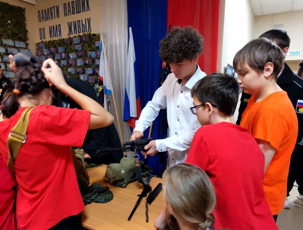 Гости провели конкурсы по тактической медицине и оказанию первой помощи, по сборке/разборке оружия, наградили детей памятными жетонами с образом Спаса Нерукотворного и символикой морской пехоты.