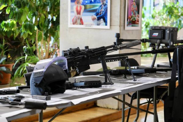 В фойе театра была организована выставка оружия и специальной техники, используемой в работе правоохранительных органов. Все желающие могли рассмотреть и подержать в руках боевое снаряжение.