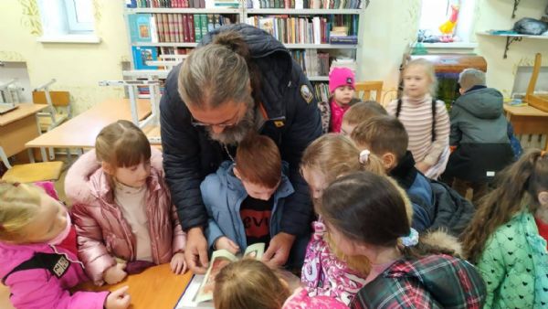 Настоятель храма, иерей Илия Точуков, рассказал детям о святынях храма и показал воскресную школу. Особое внимание отец Илия уделил Порт-Артурской иконе Божией Матери и картине «Видение отроку Варфоломею», будущего Сергия Радонежского, покровителя школьников и студентов.