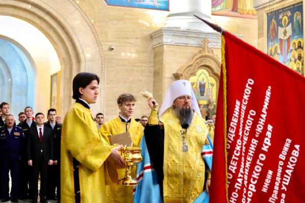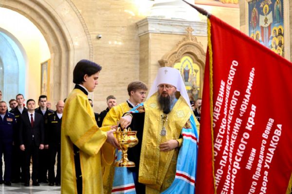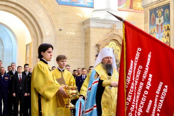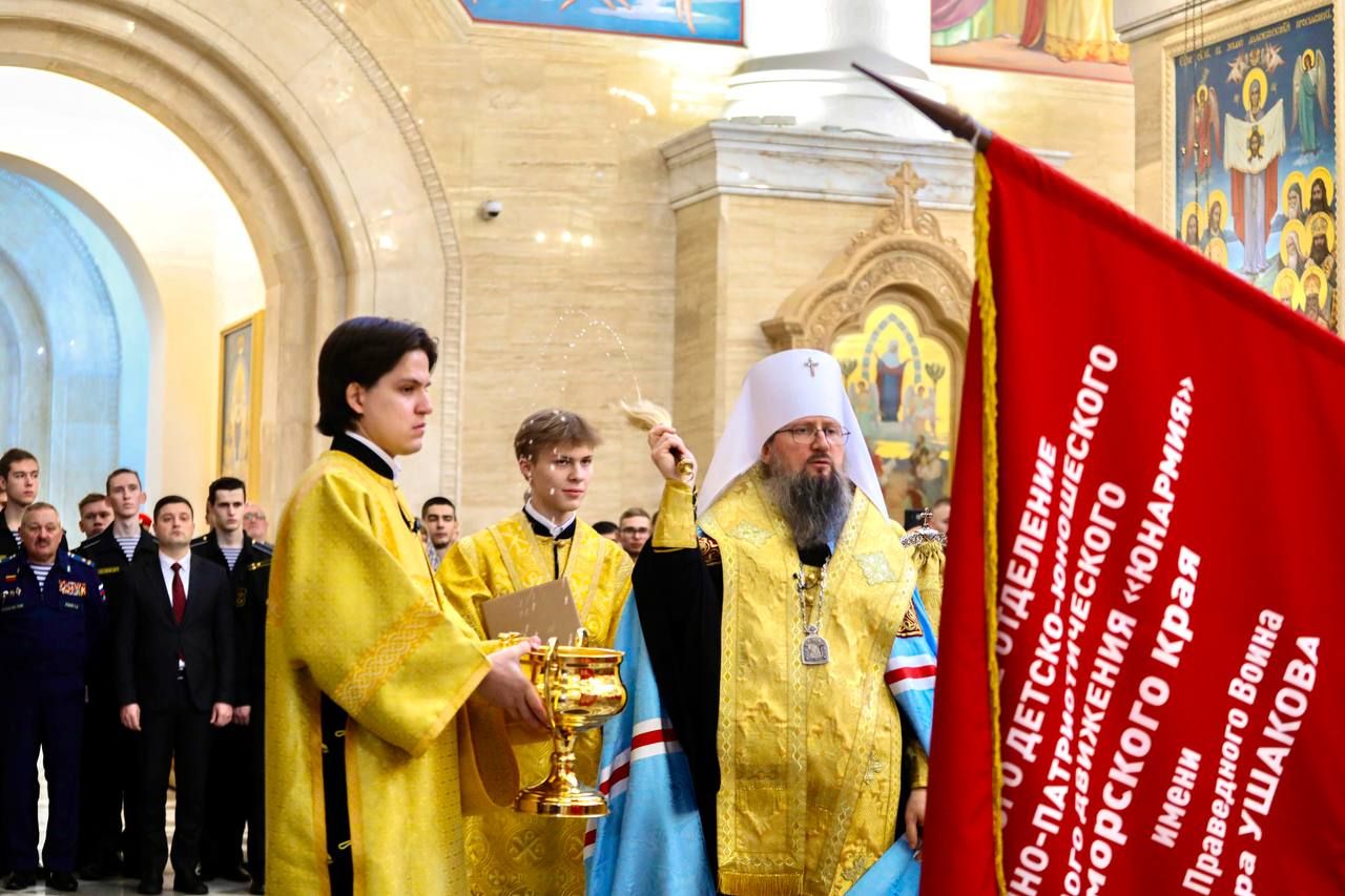 24 декабря в Спасо-Преображенском кафедральном соборе г. Владивостока состоялось освящение знамени регионального отделения Всероссийского детско-юношеского военно-патриотического общественного движения «Юнармия» Приморского края имени св. праведного воина Феодора Ушакова.