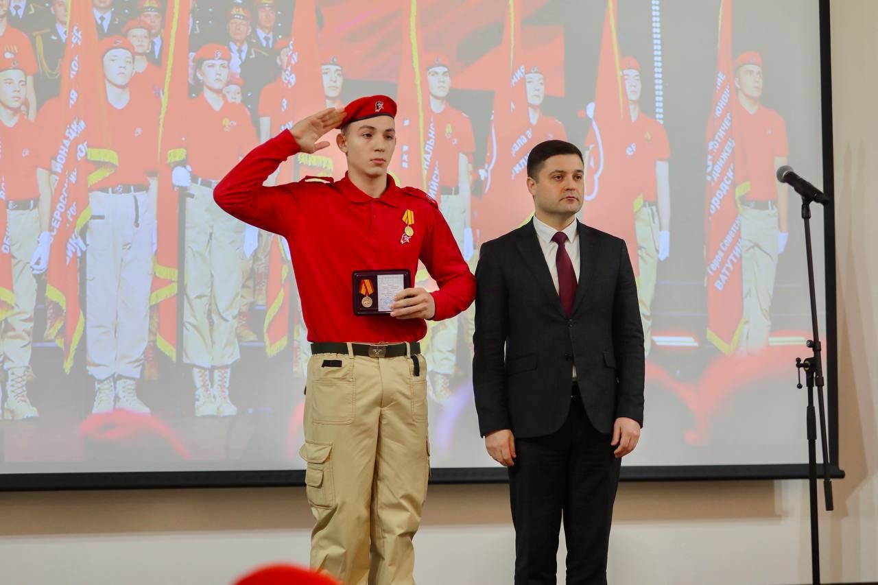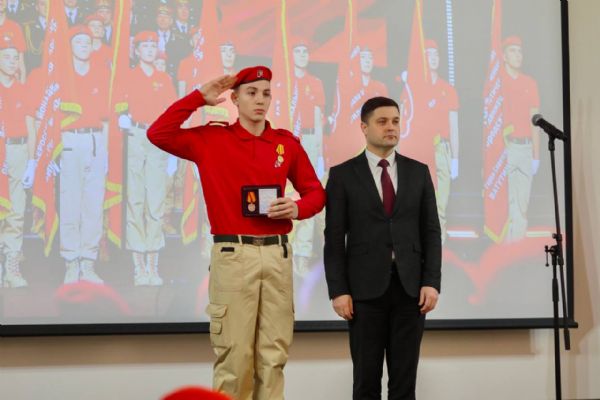 Также в этот день отметили наградами участников регионального движения «Юнармия», кто показал особые достижения в уходящем году. В завершение мероприятия член «Юнармии» Виолетта Коновалова исполнила песню «С чего начинается Родина» Вениамина Баснера.